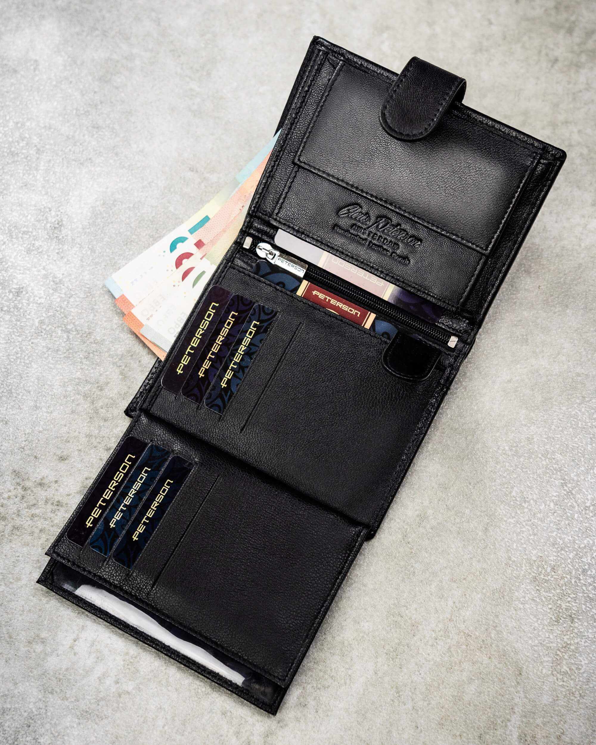 Szukasz portfela, który łączy styl, praktyczność i bezpieczeństwo? Ten elegancki, czarny portfel marki Peterson spełni wszystkie Twoje oczekiwania!