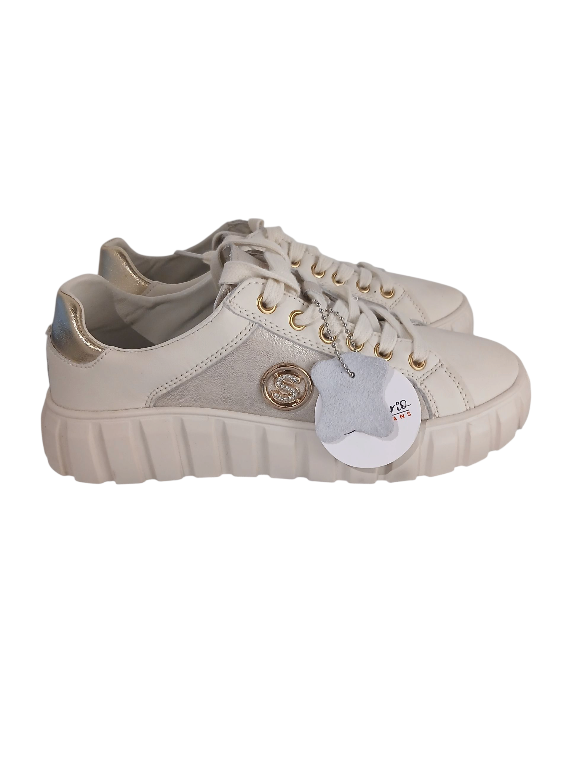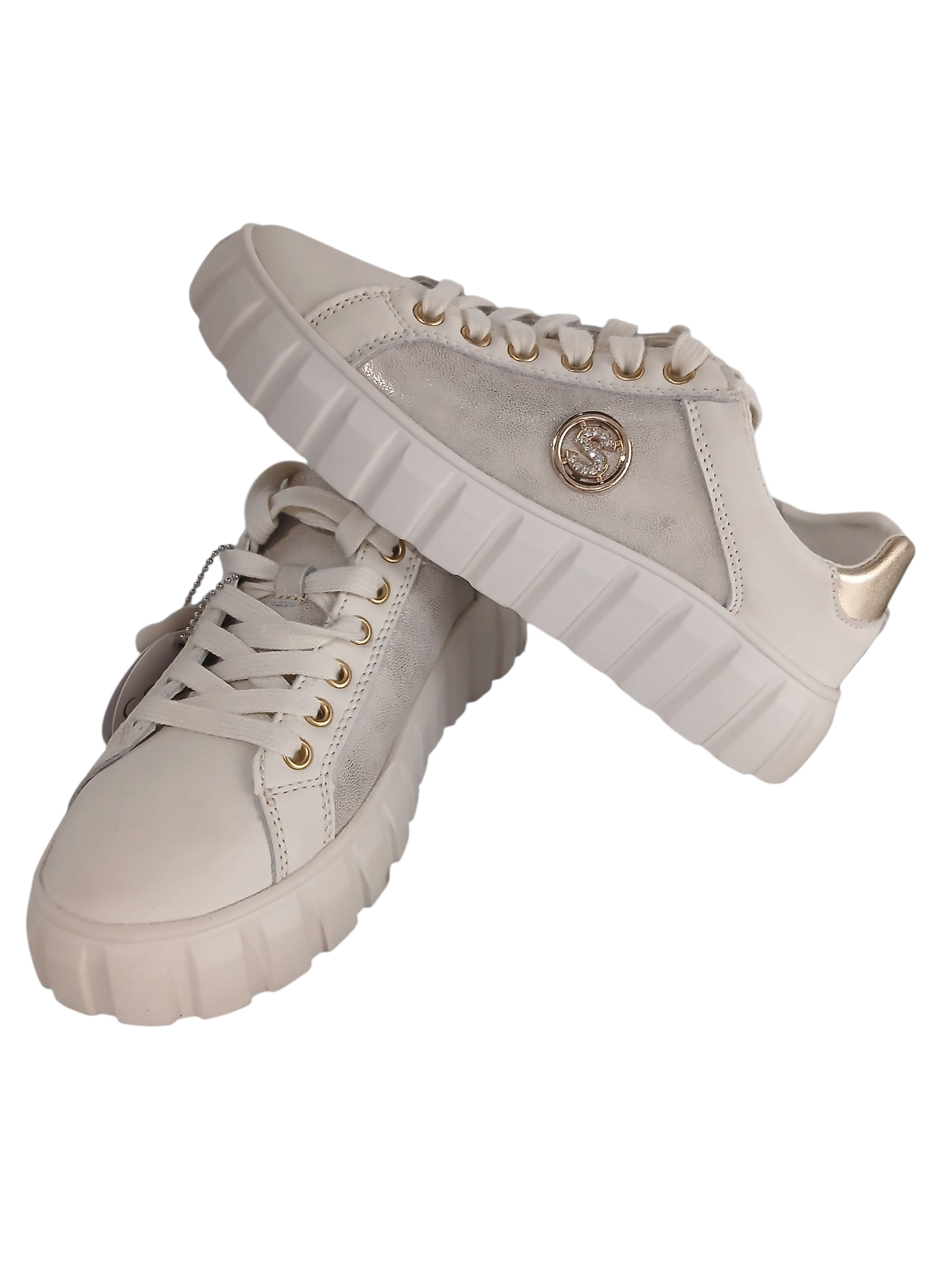 SANTORIO Sant-33 Beige to sneakersy stworzone z myślą o nowoczesnych kobietach, które cenią połączenie stylu i komfortu. Elegancka cholewka wykonana z naturalnej skóry licowej w beżowym kolorze harmonijnie współgra ze złotymi detalami, tworząc luksusowy i zarazem miejski look.