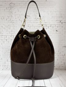 Ta luksusowa torebka typu worek w rozmiarze L została wykonana z połączenia naturalnej skóry licowej i zamszowej – zachwyca miękkością, trwałością i perfekcyjnym wykonaniem.