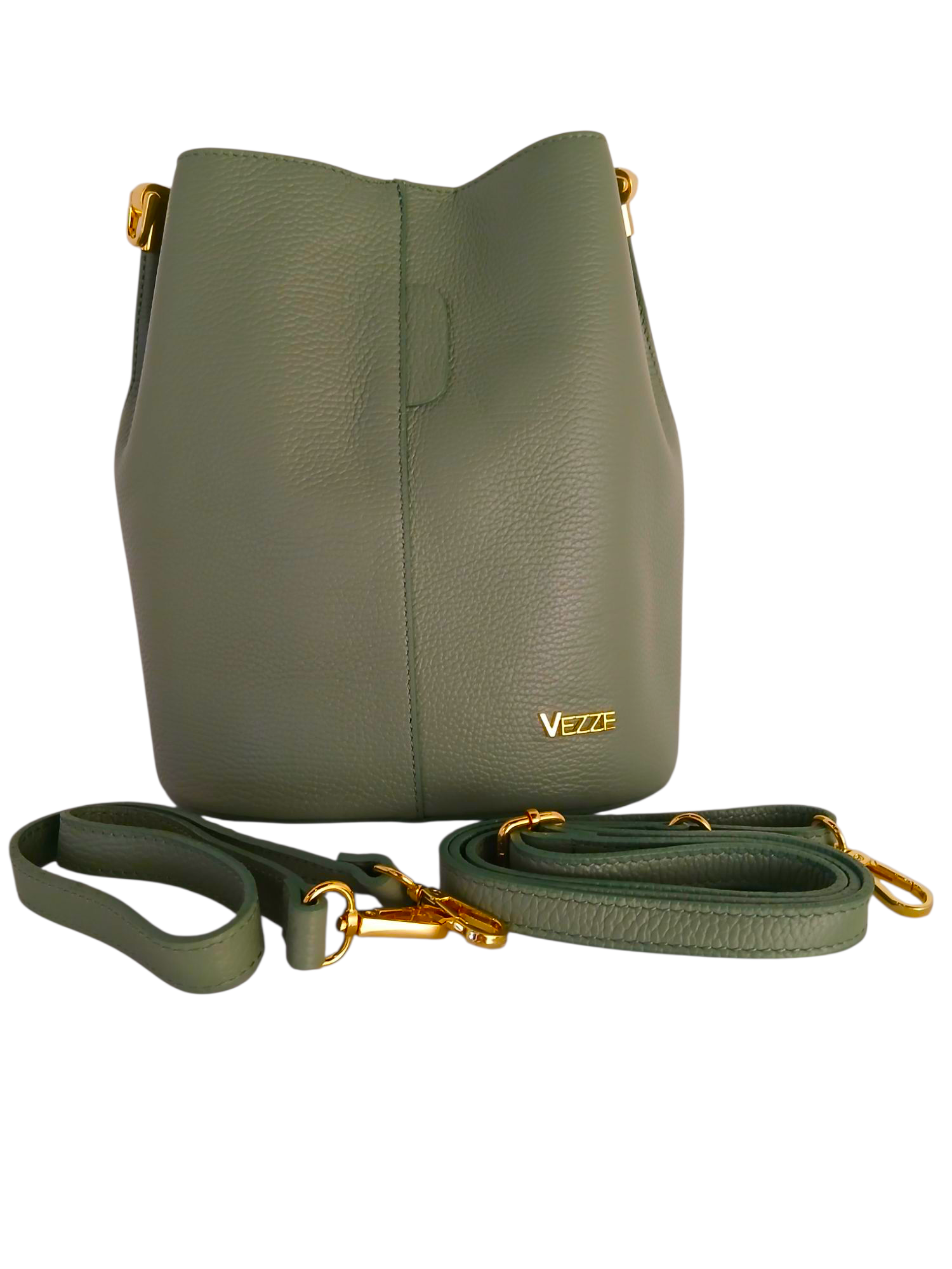 Borse in Pelle – Torebka damska worek skórzany zielona VEZZE – Made in Italy