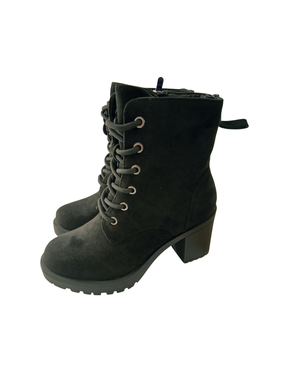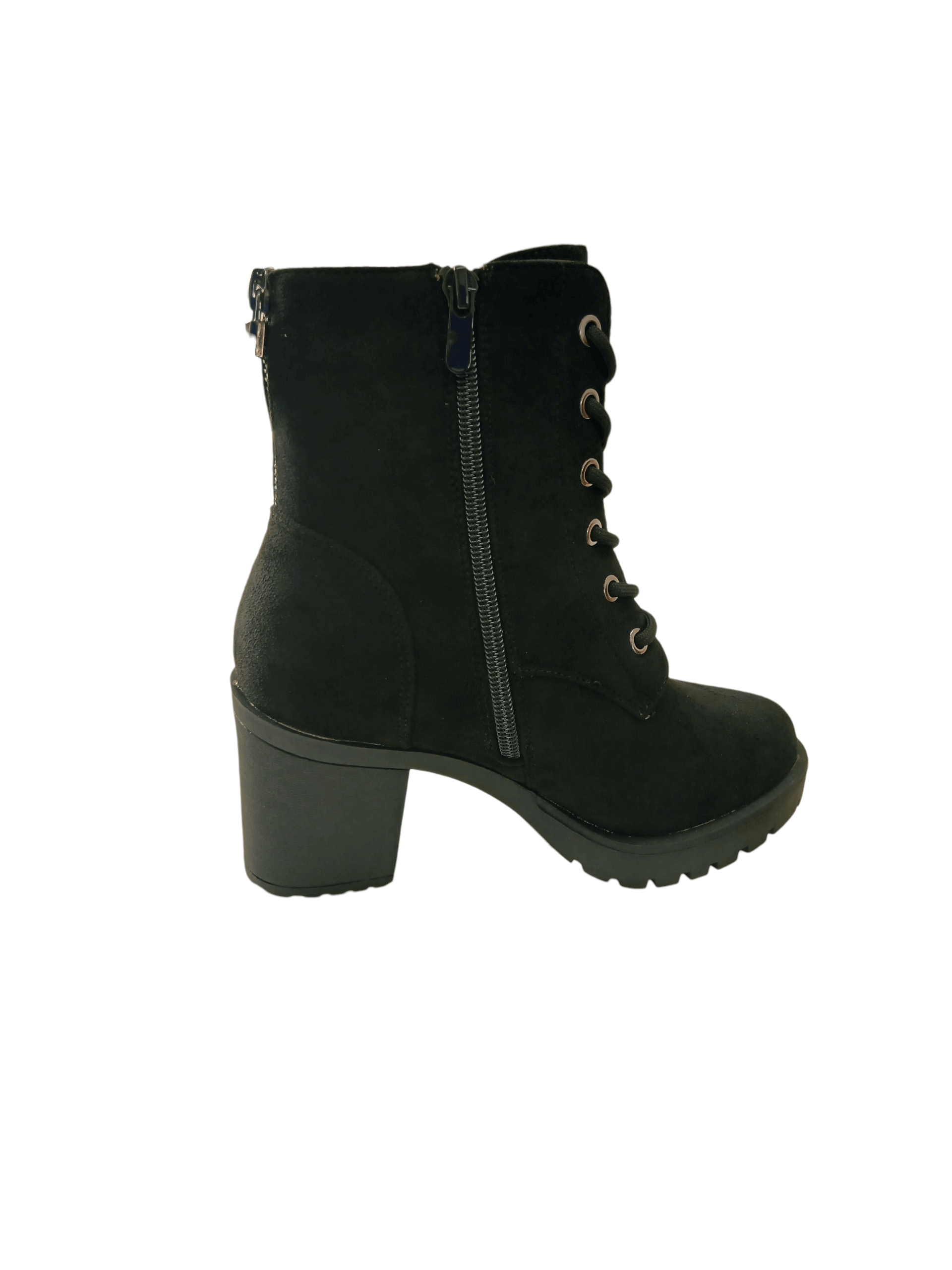 Botki damskie Enplus ZS1083-2 — czarne, sznurowane, obcas 7,5 cm, ocieplane