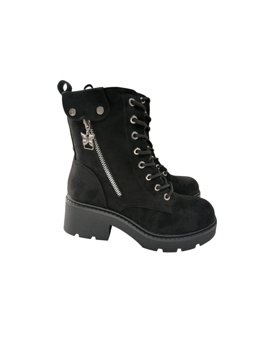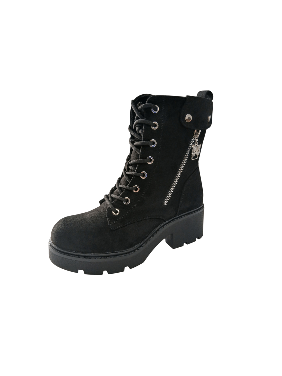Botki damskie Enplus ZS1086-2 — czarne, sznurowane, obcas 5,5 cm, ocieplane