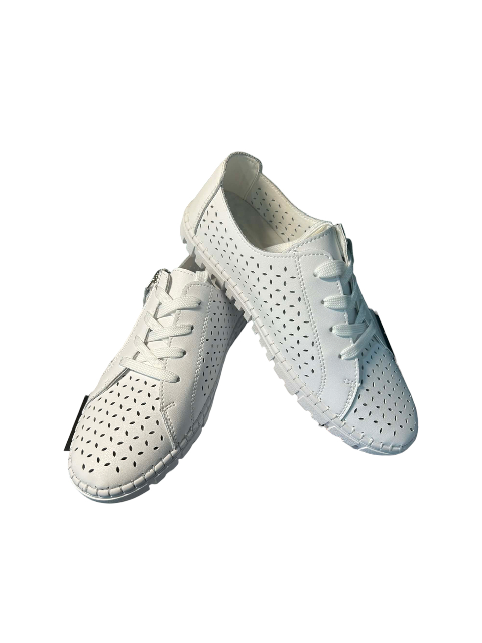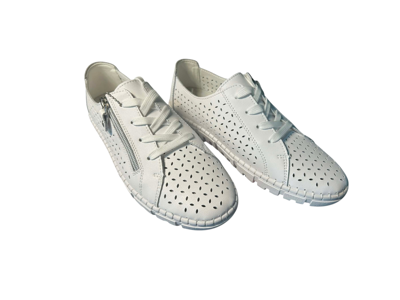 Biała podeszwa z elastycznej gumy, z wycięciami, gwarantuje lekkość, dobrą amortyzację i komfort podczas chodzenia.