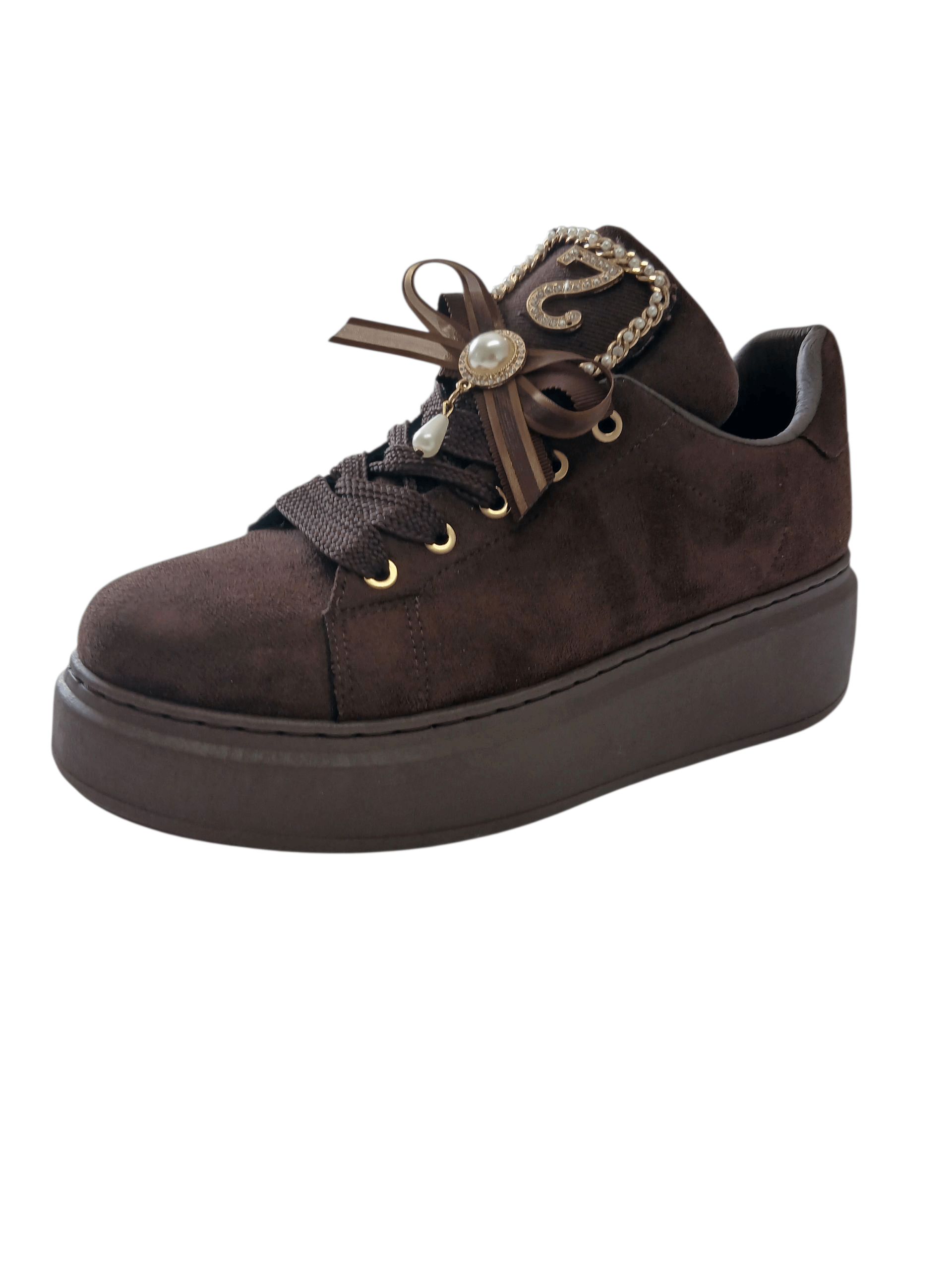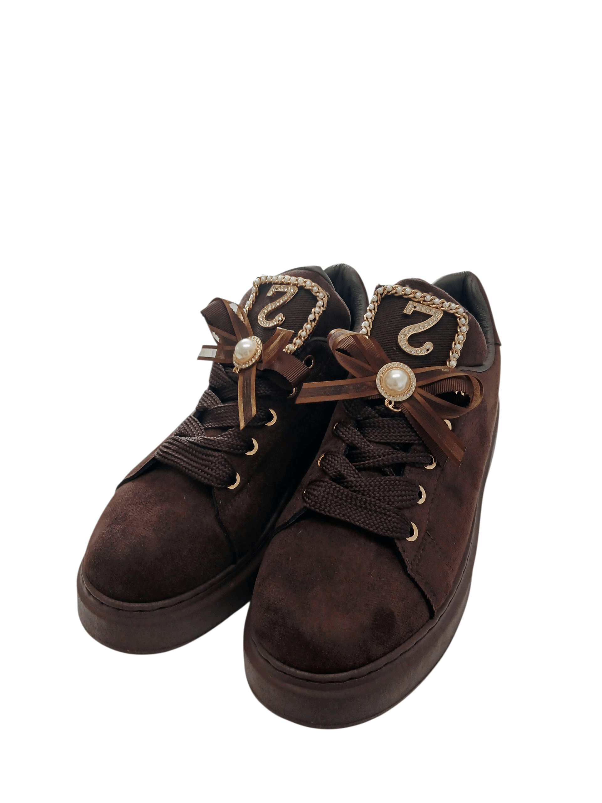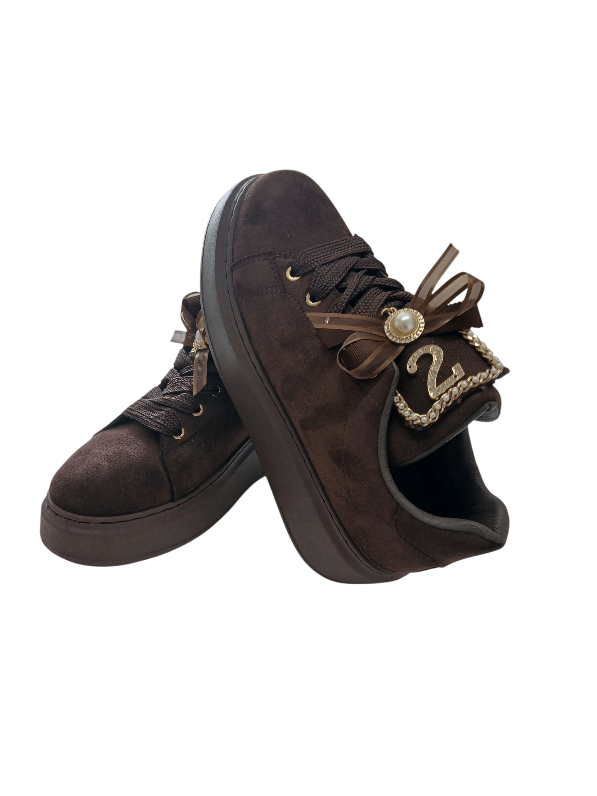 Sznurowane trampki na platformie – brązowy zamszowy szyk na jesień