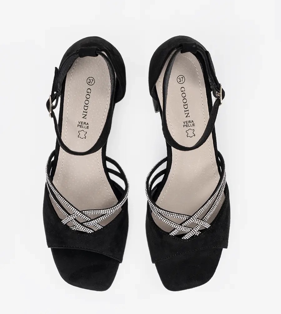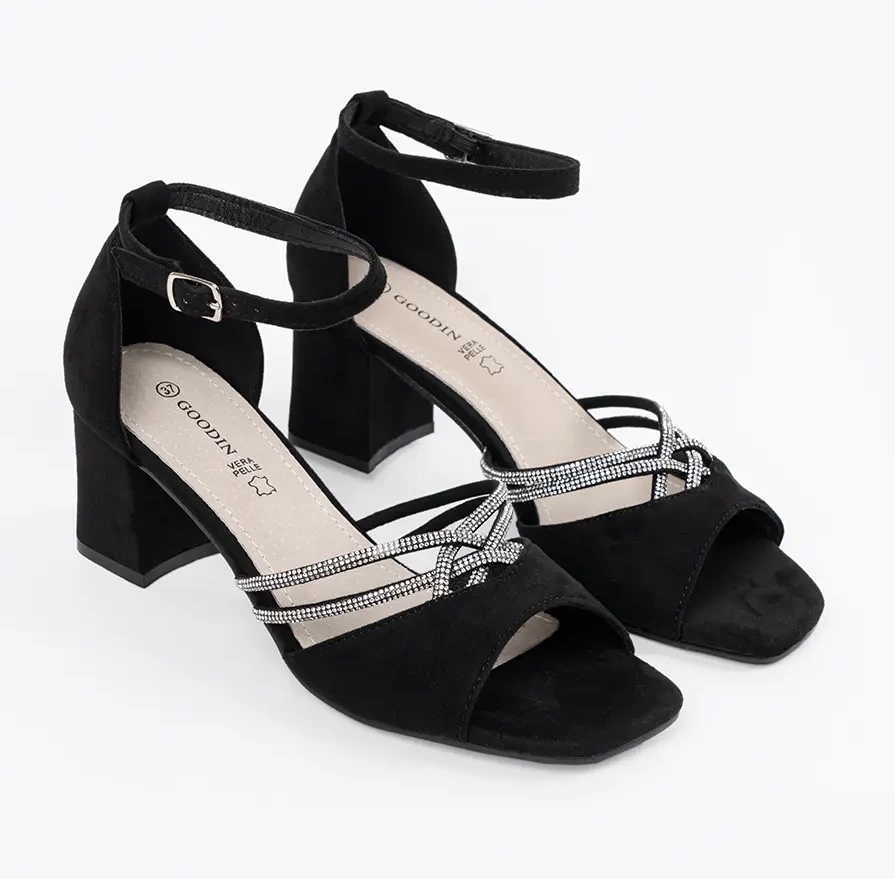 Czarne sandały zamszowe na słupku od renomowanej marki Goodin. Te wyjątkowe buty damskie łączą w sobie klasyczny styl i nowoczesne akcenty.
