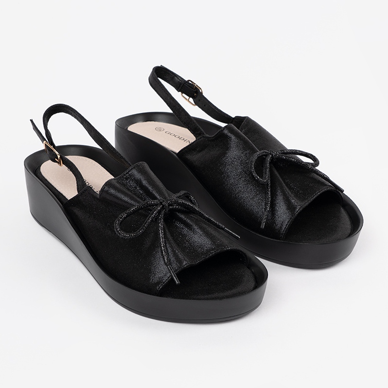 Sandały na koturnie renomowanej marki Goodin. Te klasyczne sandały, idealne na ciepłe dni, łączą w sobie nowoczesny design z praktycznością, co sprawia, że są doskonałym wyborem dla każdej kobiety, która pragnie wyglądać stylowo.