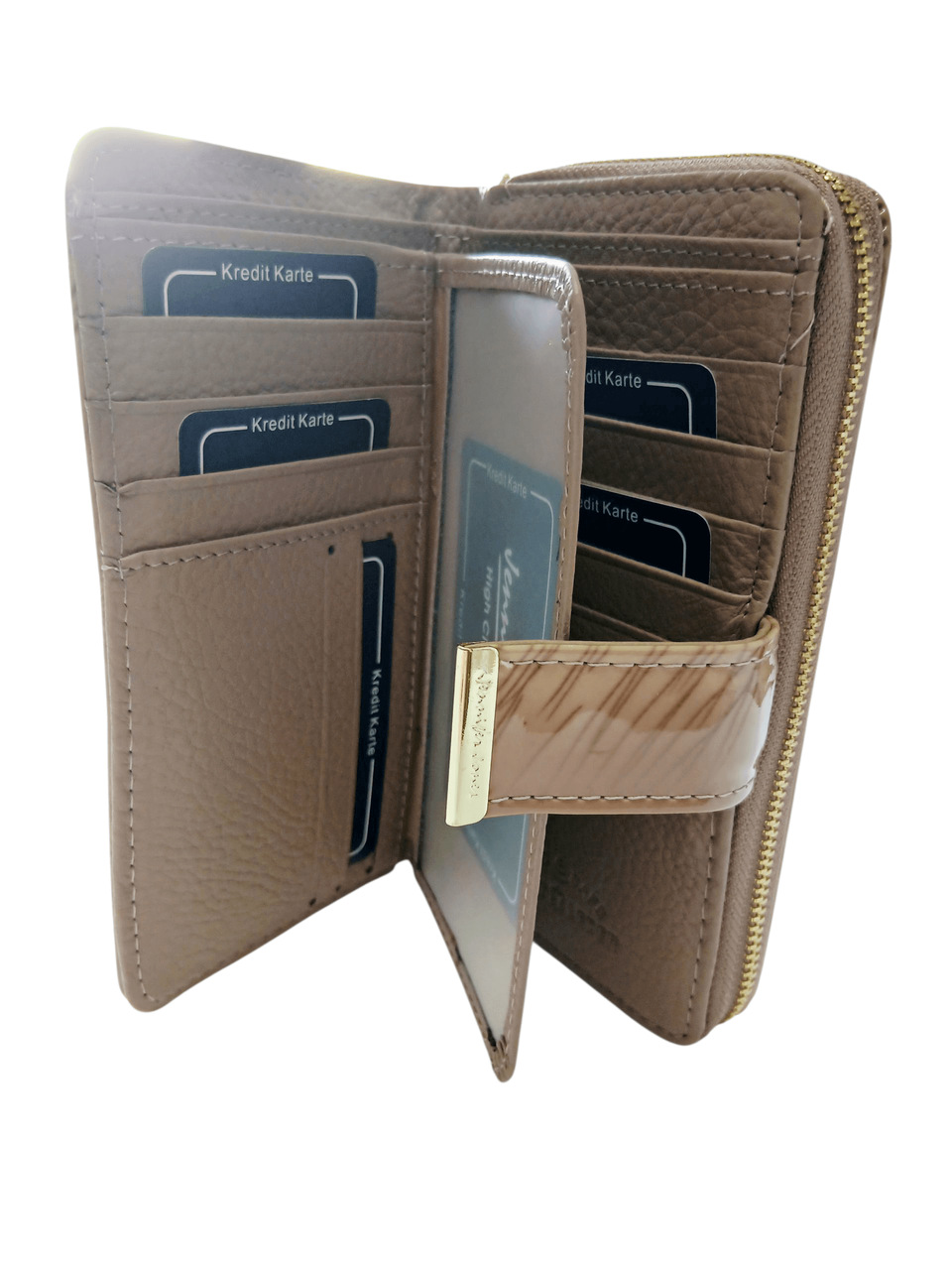 ✔ Lakierowane wykończenie – elegancki połysk i łatwe czyszczenie. Portfel prezentuje się luksusowo i odporność na zabrudzenia to jego ogromna zaleta!