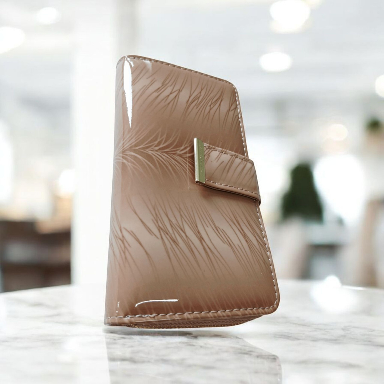 Stylowy i funkcjonalny portfel damski – beż lakierowany | Kod: 5280