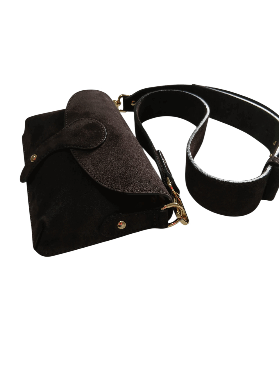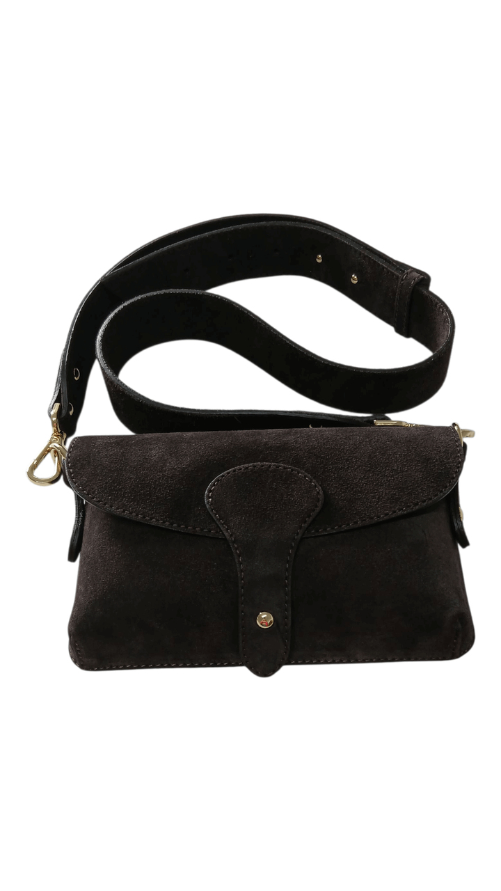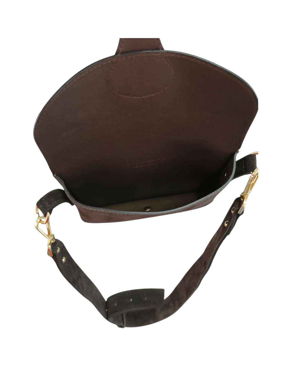 Torebka wykonana z miękkiej, naturalnej skóry zamszowej o szlachetnym wyglądzie i przyjemnej w dotyku fakturze.
