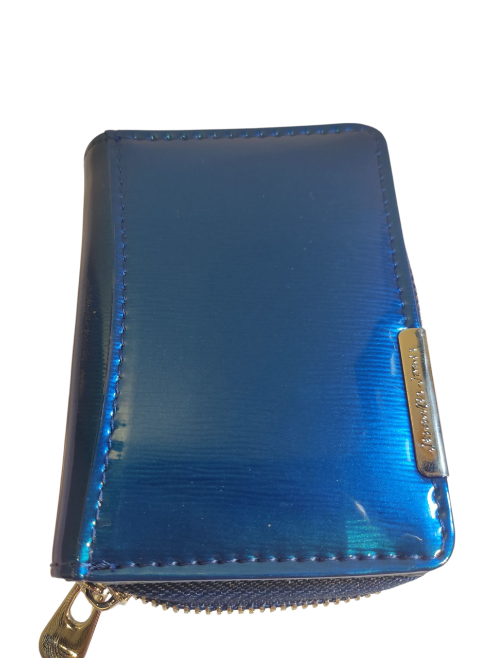 Mały portfel damski – niebieski lakier, wielka funkcjonalność!