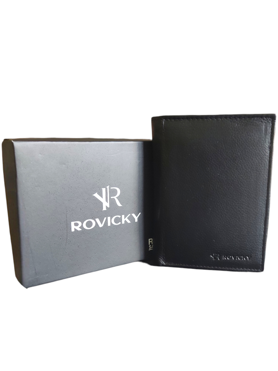 Portfel zapakowany jest w oryginalne pudełko Rovicky, dzięki czemu doskonale sprawdzi się jako elegancki prezent dla mężczyzny.