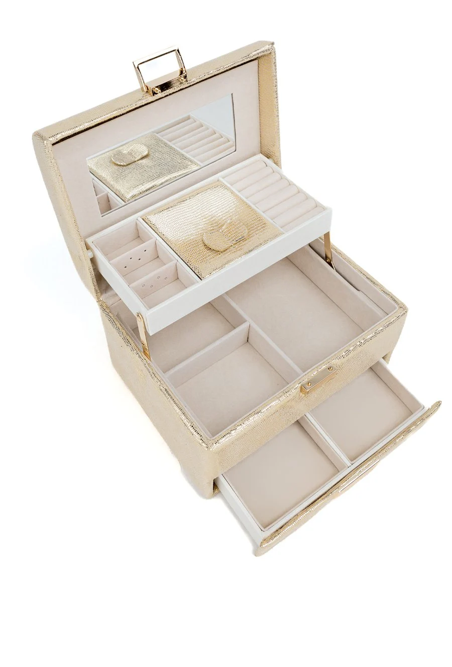 MONNARI Kuferek Na Biżuterię Kosmetyki Organizer Z Lusterkiem Złoty Prezent