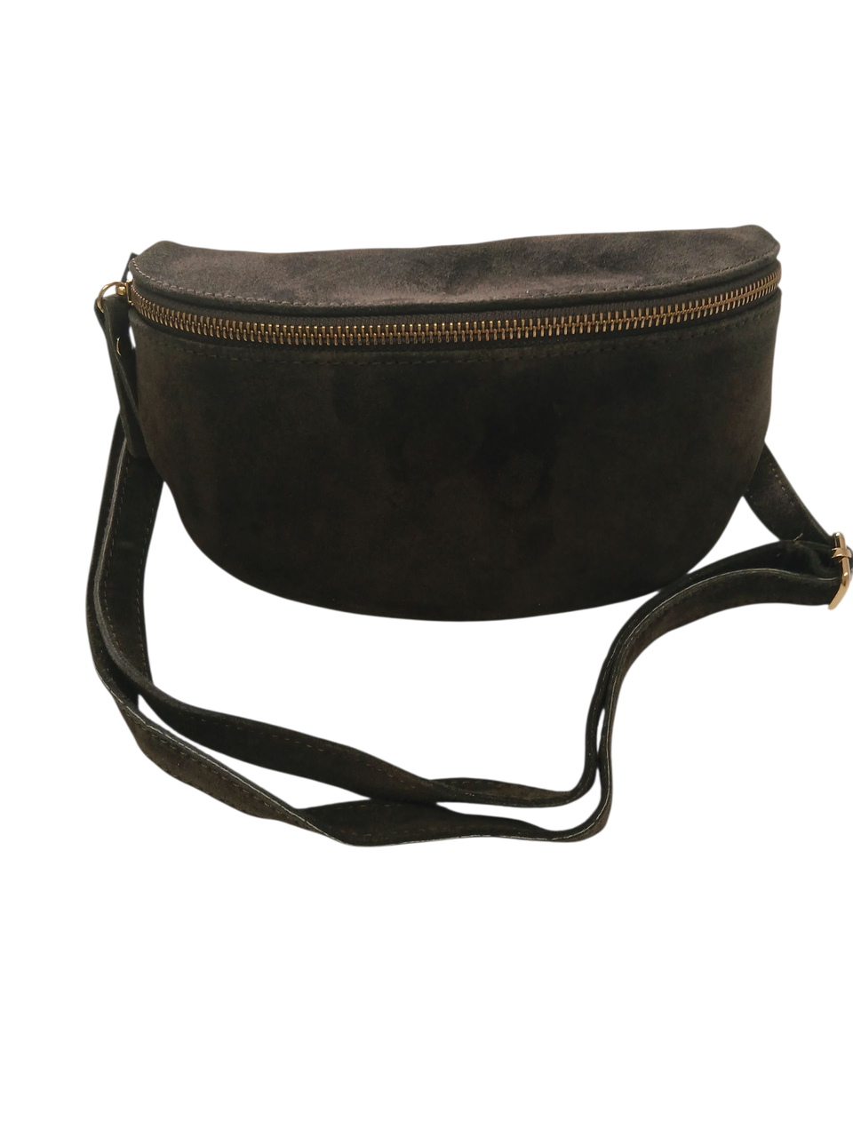 ✨ Damska saszetka nerka ze skóry naturalnej – Brązowa zamsz ✨
