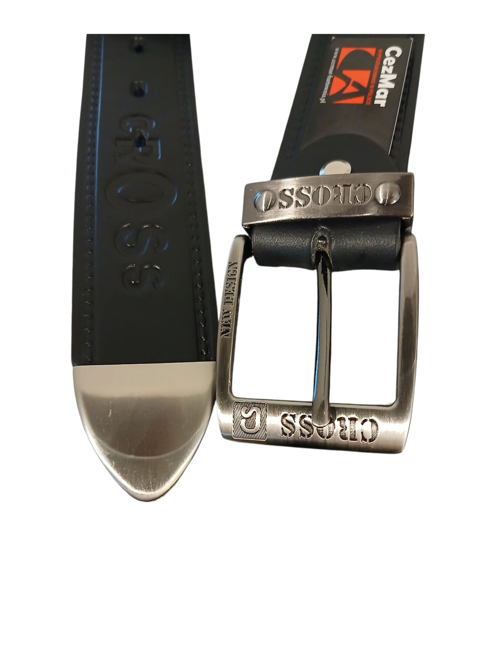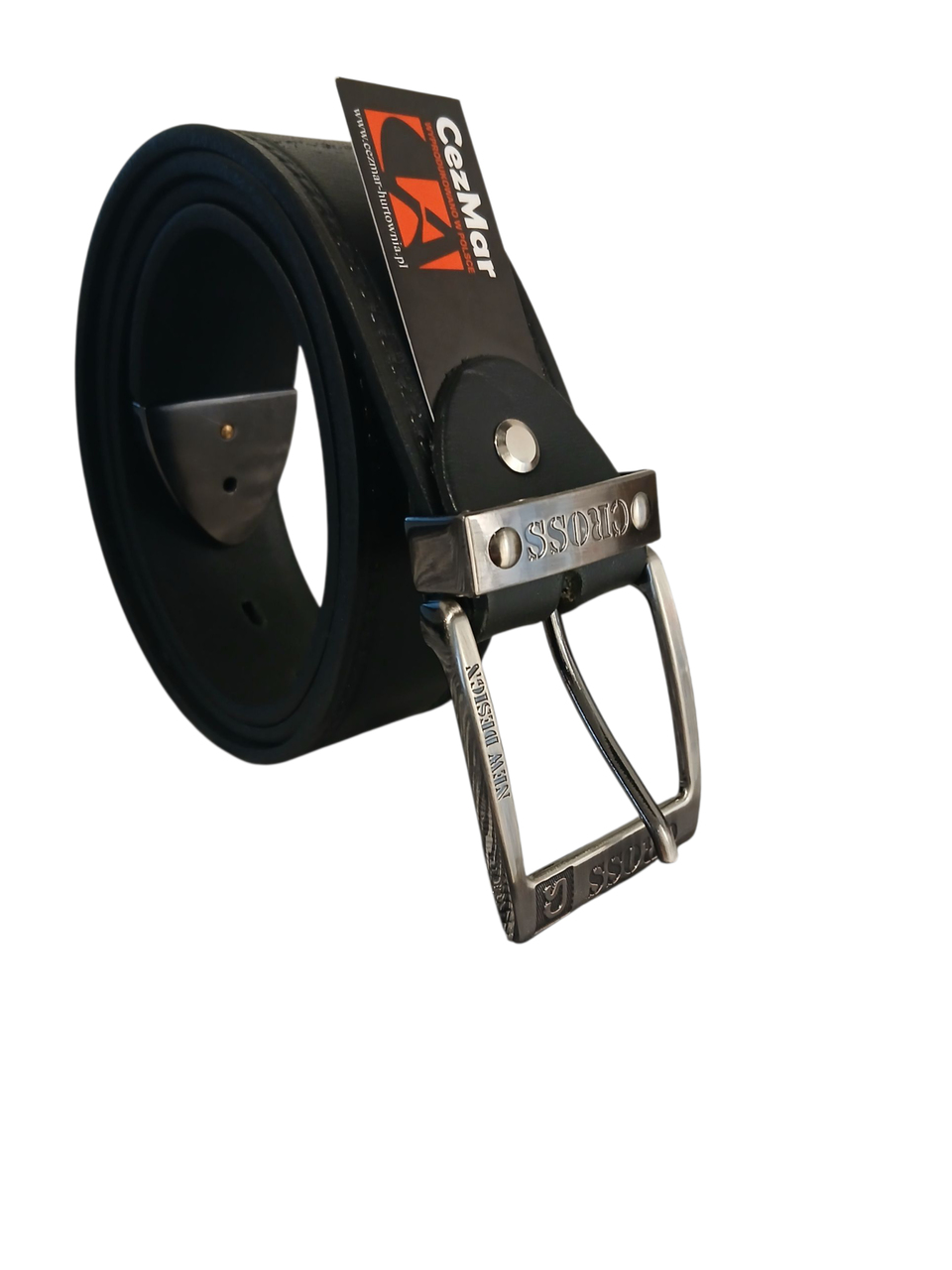 Czarny pasek męski Cezmar wykonany z naturalnej skóry to propozycja dla osób, które cenią trwałość, mocny charakter i nowoczesny styl. Wyraźne tłoczenia po bokach, imitujące przeszycia, nadają paskowi efektownego wyglądu i podkreślają jego solidność. Model wyróżnia się także klamrą z tłoczonym napisem Cross oraz dodatkowym oznaczeniem New Design, dzięki czemu prezentuje się wyjątkowo i przyciąga uwagę.