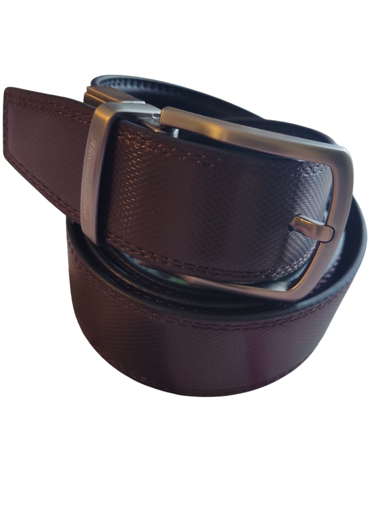 Ten elegancki, dwustronny pasek męski to doskonały wybór dla mężczyzn, którzy cenią sobie funkcjonalność, styl i wygodę. Wystarczy obrócić klamrę, aby w kilka sekund zmienić kolor paska z głębokiego czarnego na elegancki brązowy – dopasuj się do każdej stylizacji bez potrzeby zmiany dodatków.