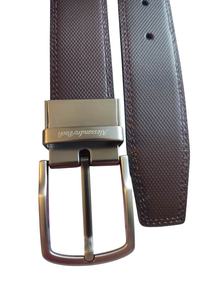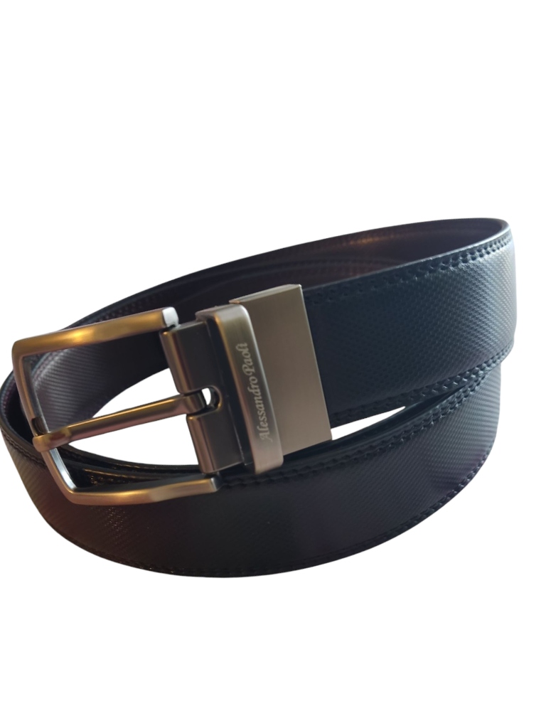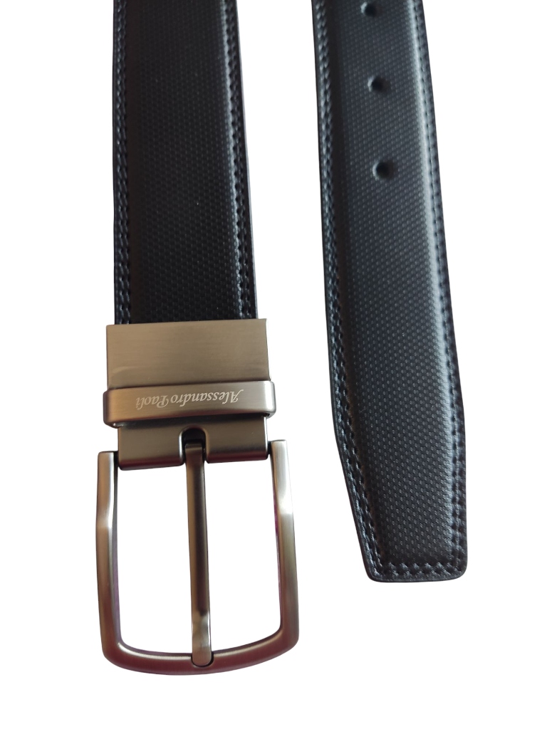 Dwustronny pasek męski skórzany | CZARNY & BRĄZOWY | Klasyczna klamra | Uniwersalna elegancja, tłoczona faktura