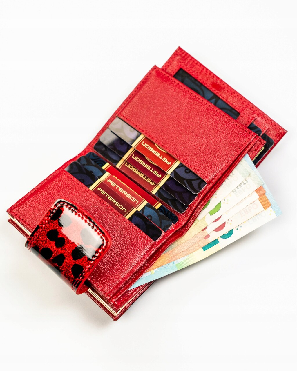 Mały portfel damski PETERSON PTN PS329-PDS/2234 – skóra naturalna lakierowana, panterka, RFID