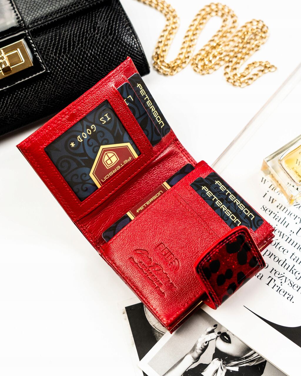 Peterson portfel Damski skórzany Czerwony wzór panterka PS329-PDS/2234