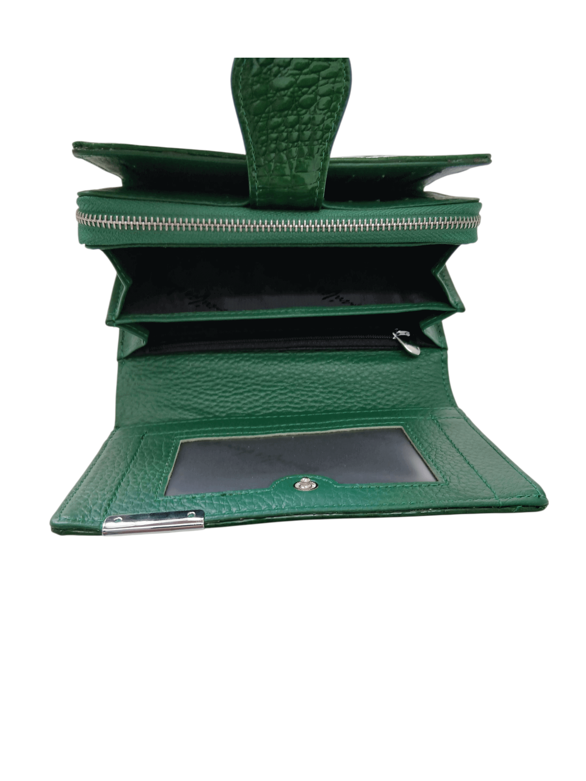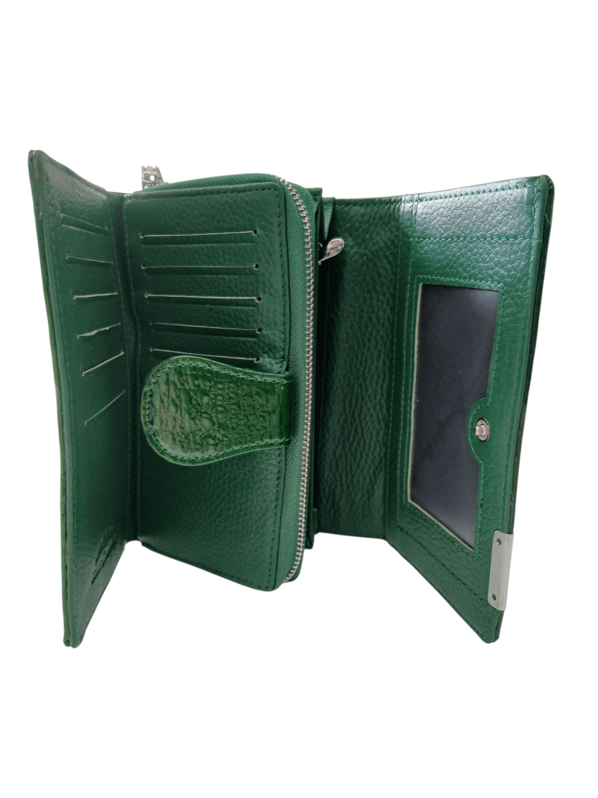 Szukasz stylowego i funkcjonalnego portfela, który połączy elegancję z praktycznością? Ten portfel damski ze skóry lakierowanej w głębokim, modnym odcieniu zieleni to idealny wybór dla kobiet ceniących klasę, porządek i bezpieczeństwo!