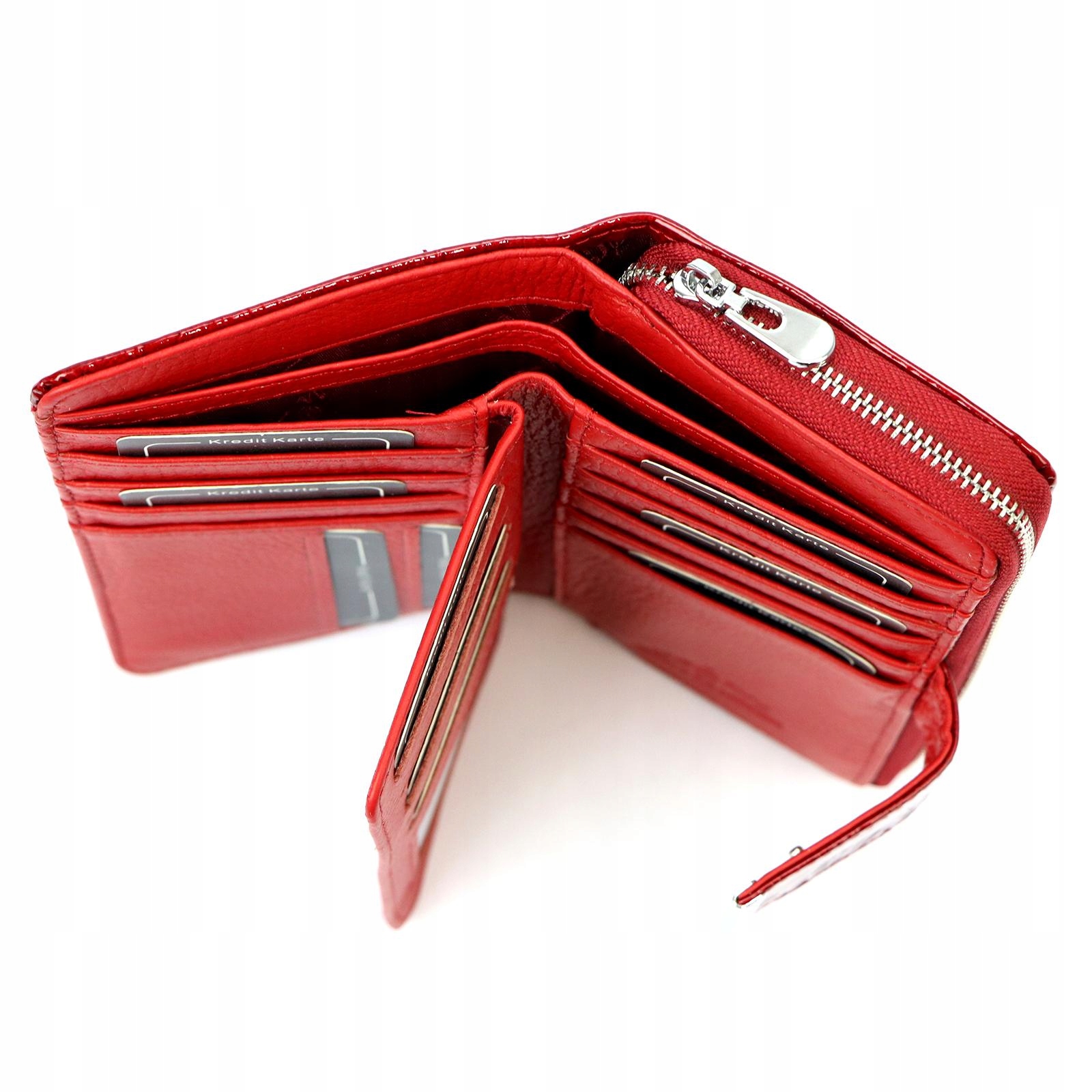Przyciągający uwagę czerwony kolor sprawia, że portfel wyróżnia się na tle innych akcesoriów. To idealna propozycja dla kobiet, które nie boją się wyrażać swojego stylu i osobowości. Czerwony portfel to nie tylko praktyczny element, ale także wyrazista część Twojej biżuterii modowej, która doda kobiecości i charakteru każdej kreacji.
