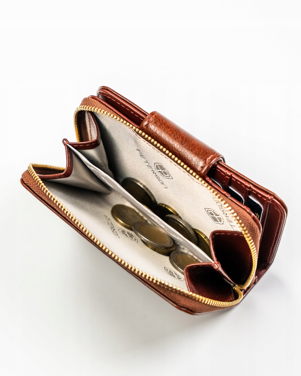 ✔ podwójną kieszeń na monety zamykaną na suwak – praktyczna i bezpieczna
