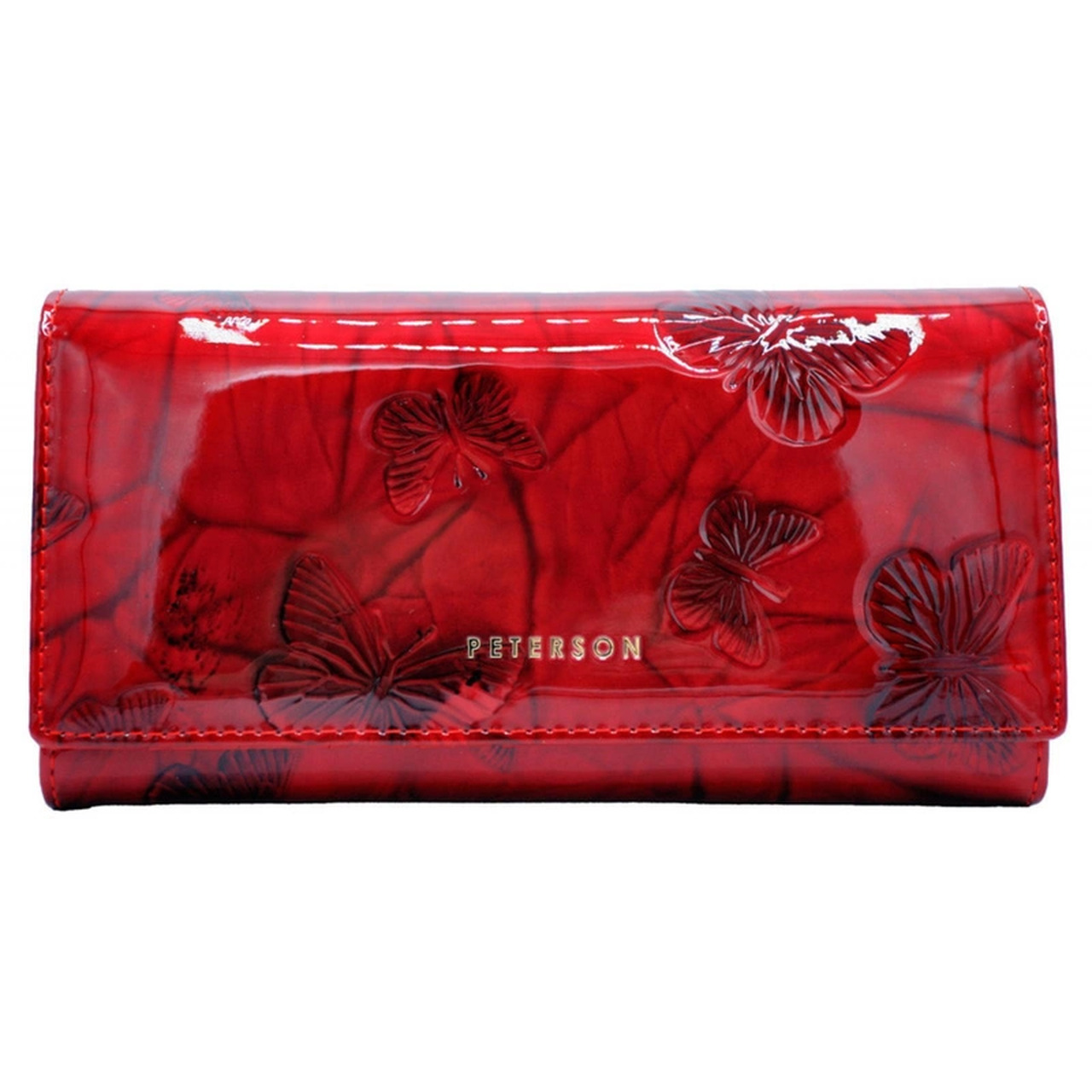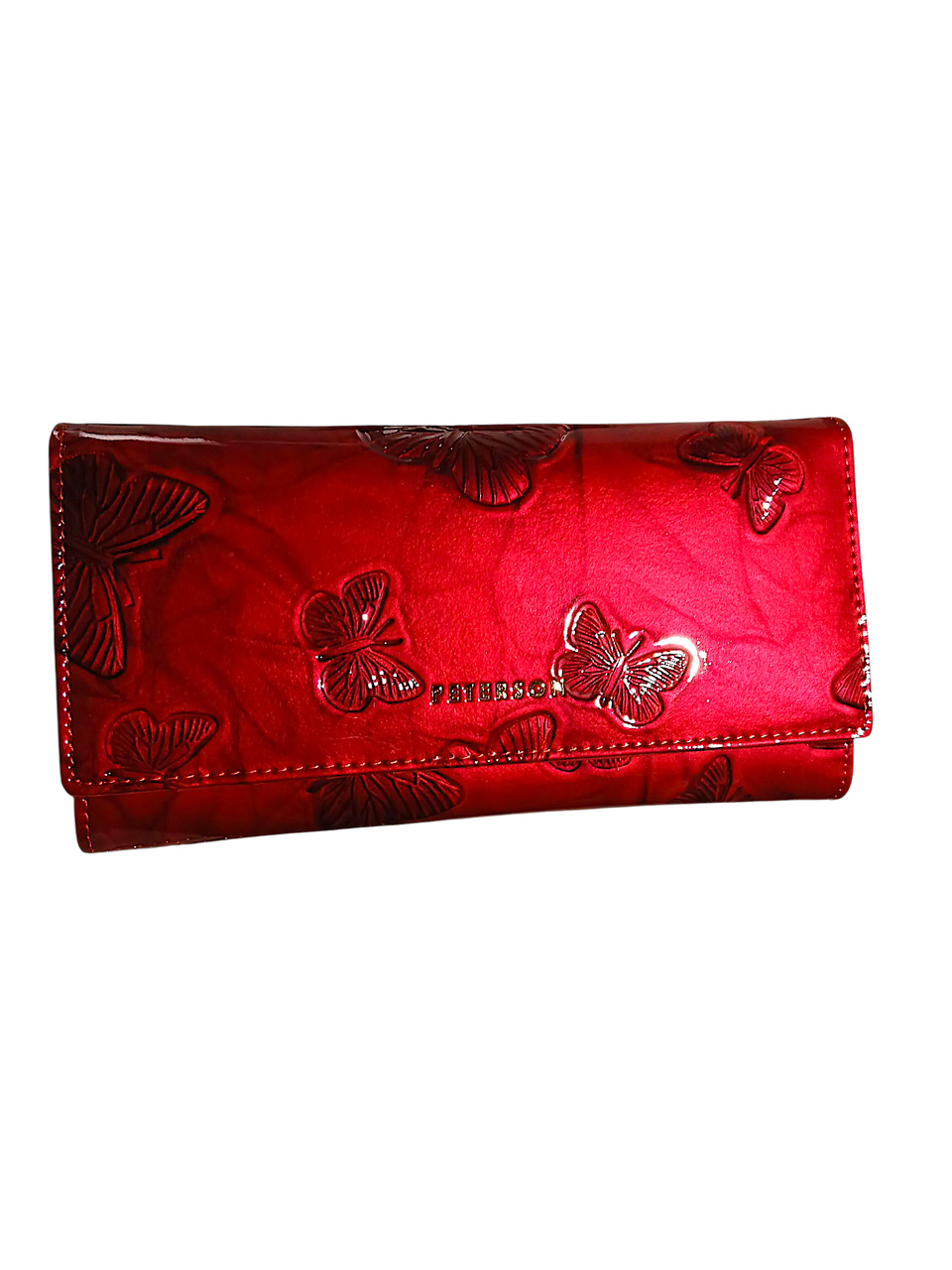 Ten wyjątkowy portfel marki Peterson zachwyca oryginalnym wzorem z motylkami i intensywnym czerwonym połyskiem, który dodaje mu wyjątkowego charakteru. Wykonany z naturalnej skóry lakierowanej, łączy w sobie trwałość, elegancję i praktyczne wnętrze, które pomieści wszystko, czego potrzebujesz.