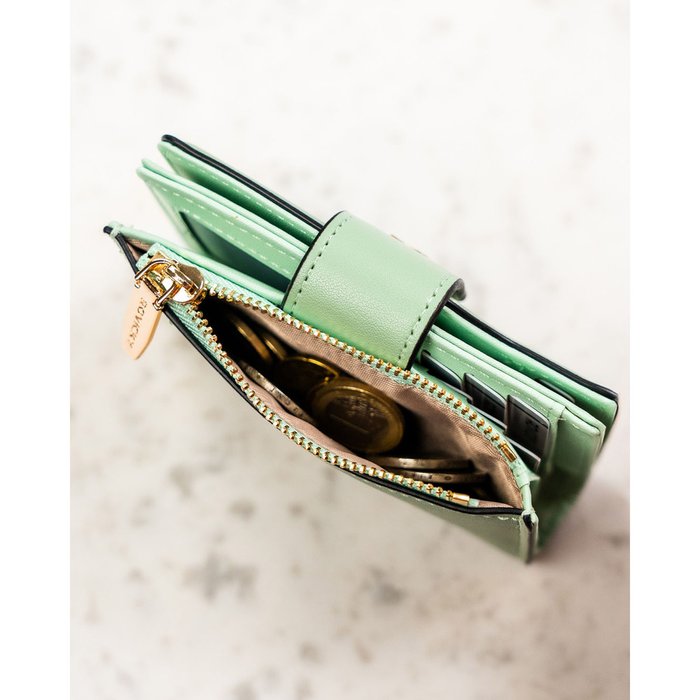 • Kieszeń na monety zamykana na suwak – koniec z rozsypującym się bilonem.