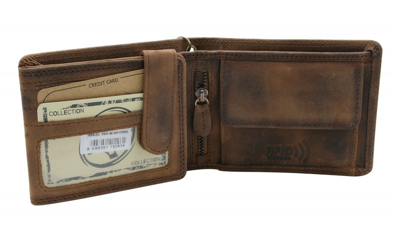 Portfel męski ze skóry naturalnej nubukowej – styl „Stara Ameryka” + RFID