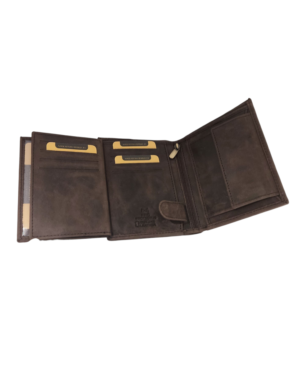Portfel wykonany z trwałej, nubukowej skóry naturalnej, która charakteryzuje się solidnością oraz wyjątkowo przyjemną w dotyku powierzchnią. Uniwersalna, pionowa orientacja i klasyczny fason sprawiają, że model ten świetnie sprawdzi się u Panów w każdym wieku.
