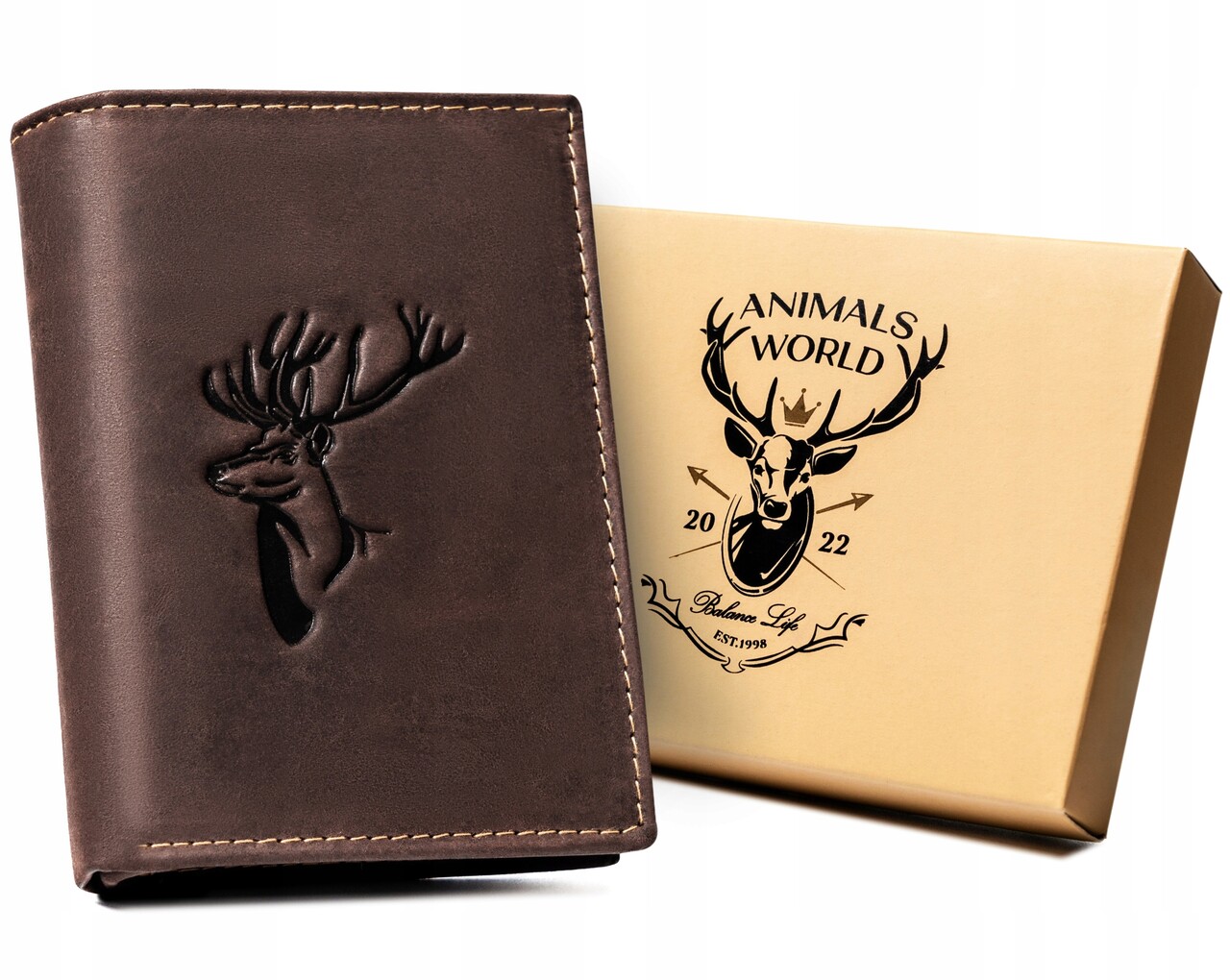 PORTFEL MĘSKI SKÓRZANY ANIMALS WORLD N4-CHM-DEER/4293 BRĄZOWY