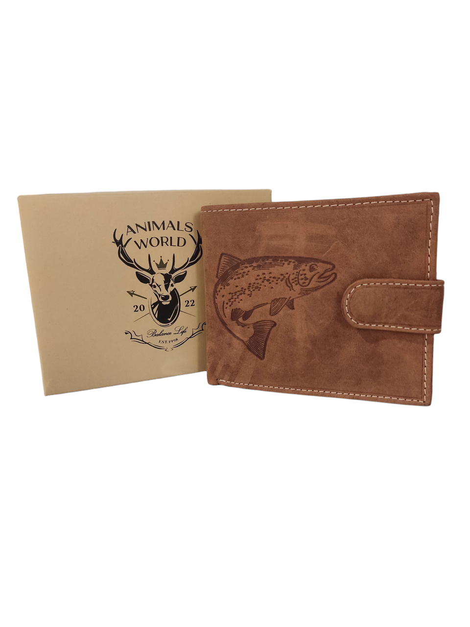 PORTFEL MĘSKI DLA MIŁOŚNIKÓW WĘDKARSTWA SKÓRZANY Z GRAWEREM RYBY. IDEALNY NA PREZENT