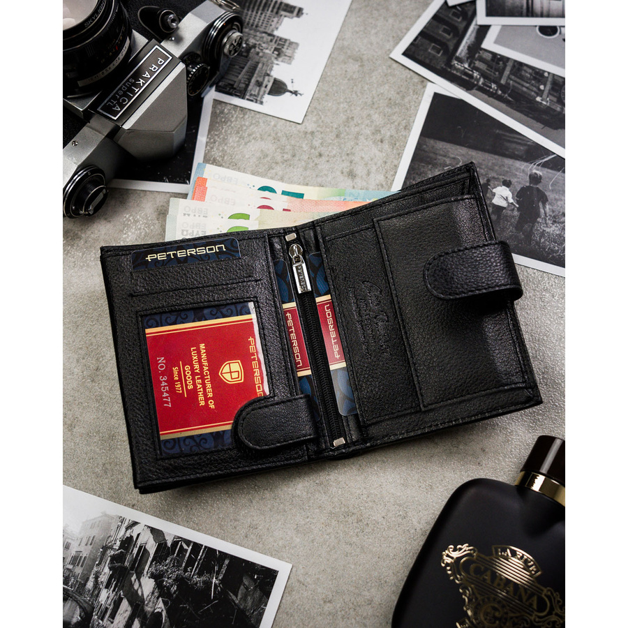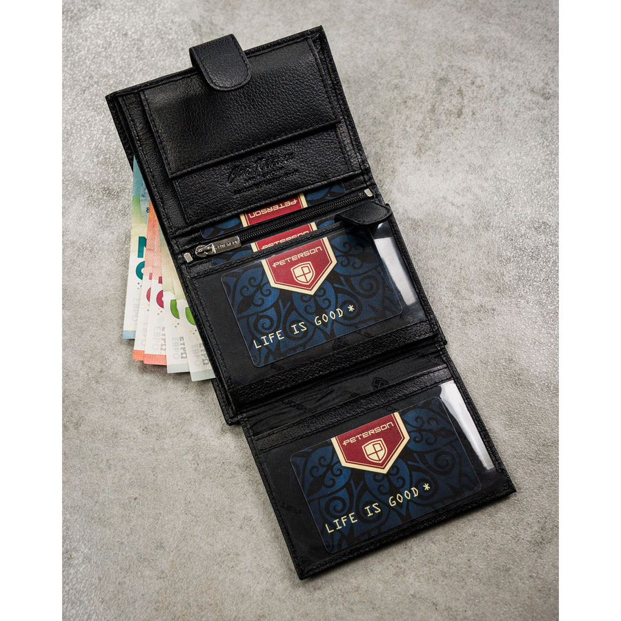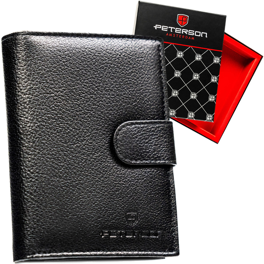 Czarny portfel ze skóry naturalnej PETERSON zamykany na zatrzask i wyposażony w system RFID –