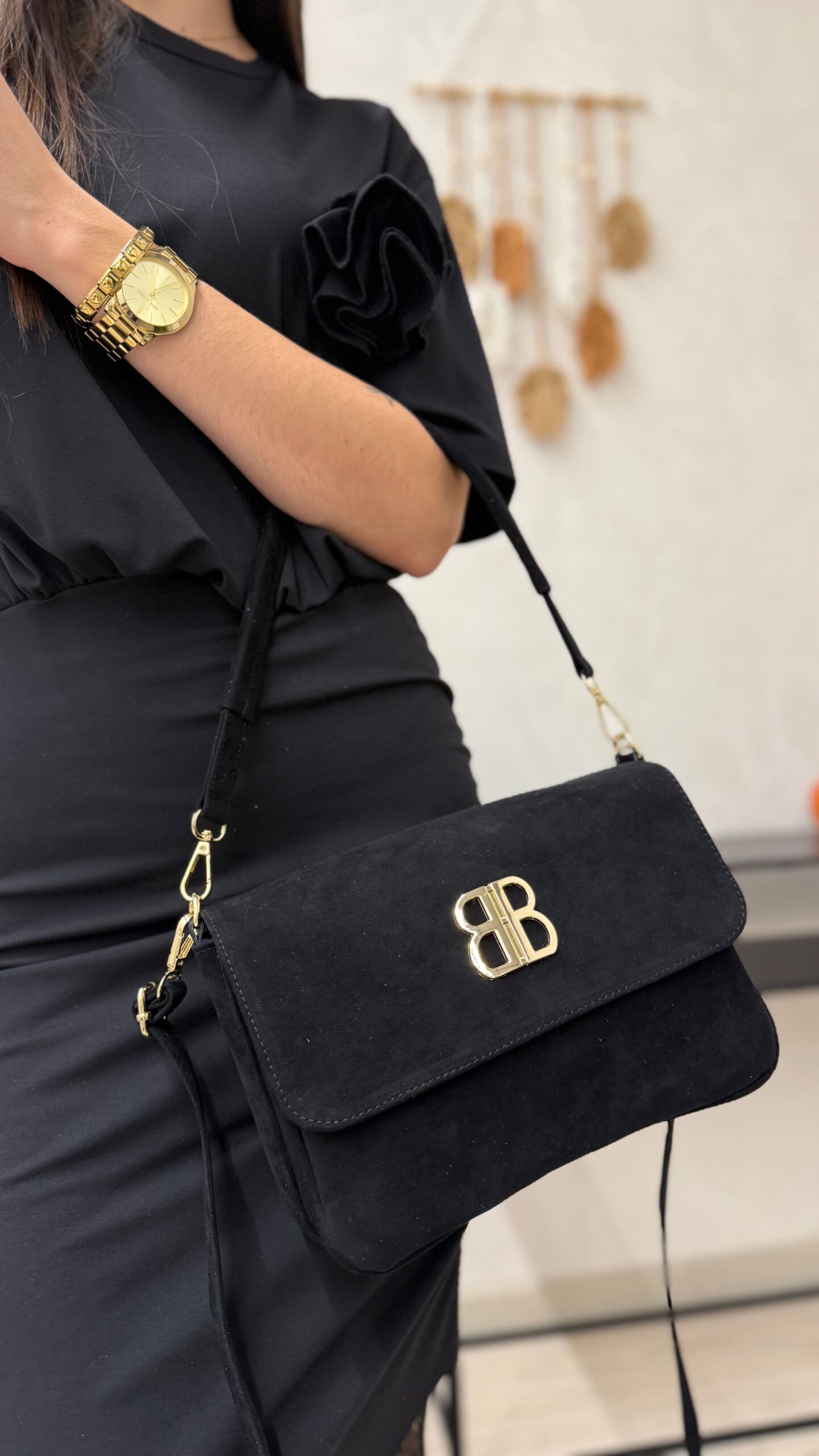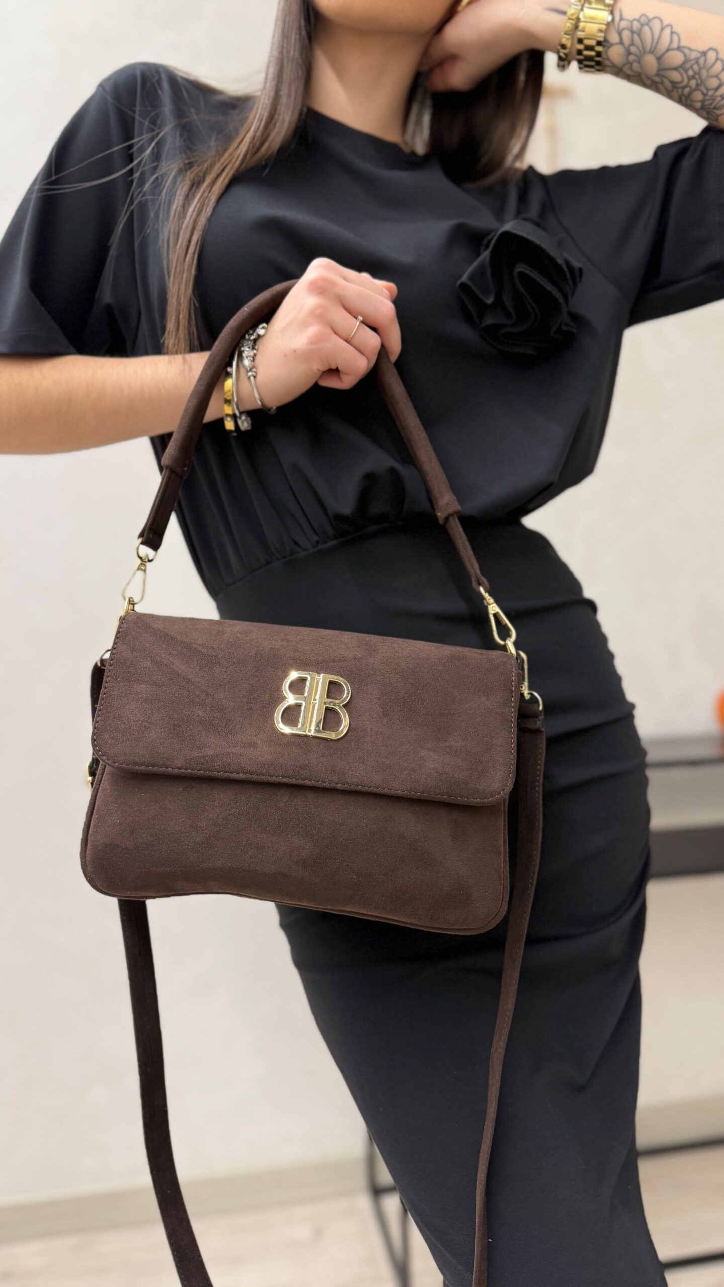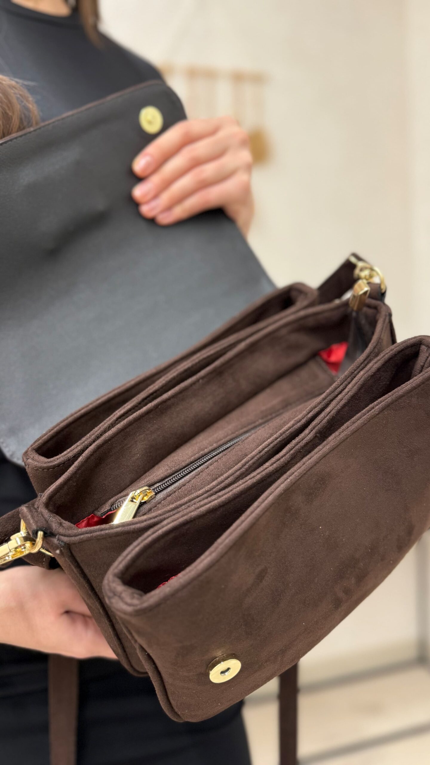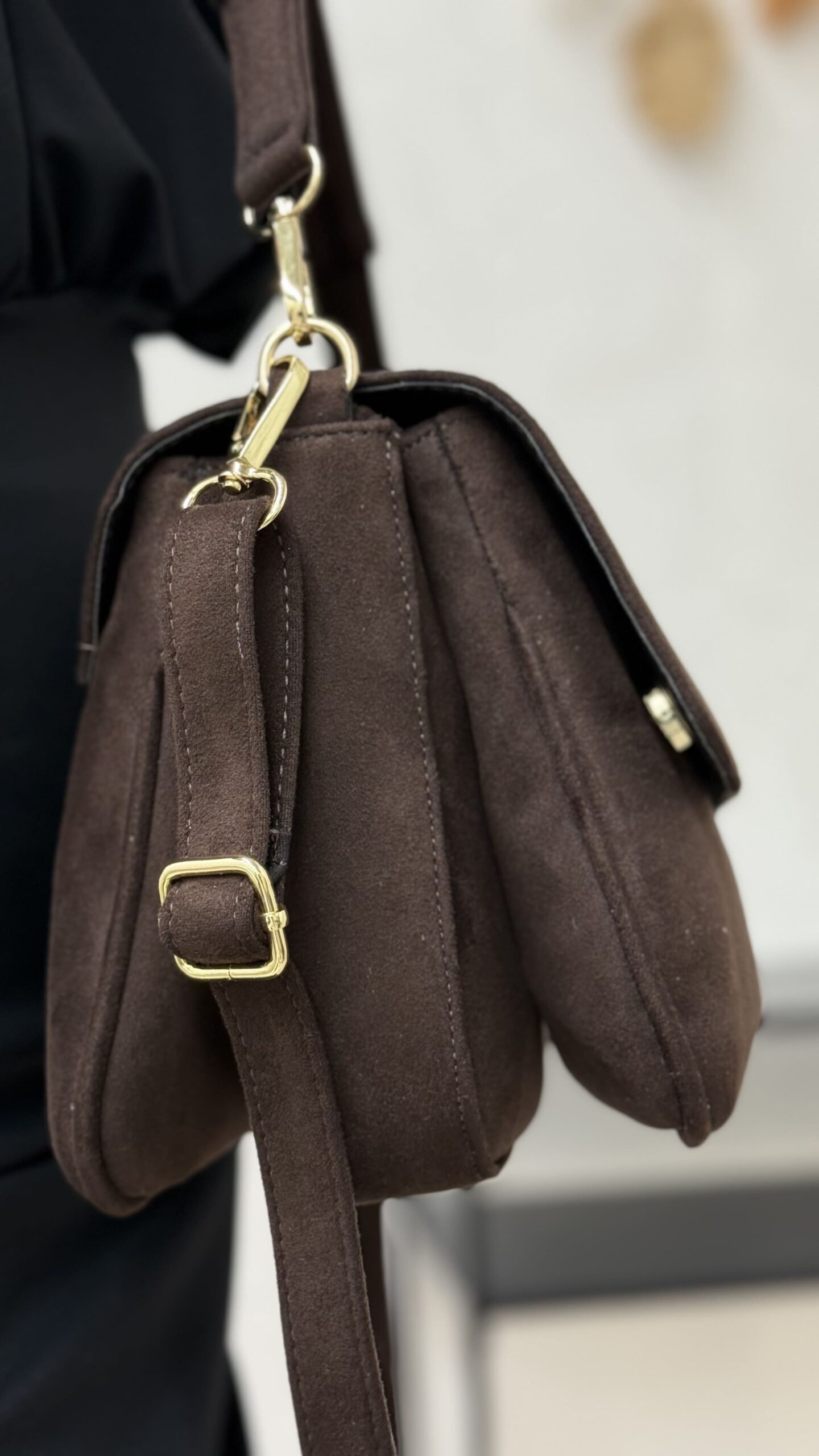 - Welurowe nubukowe wykończenie – miękkie, przyjemne w dotyku i stylowe. Torebka prezentuje się niezwykle kobieco i elegancko.