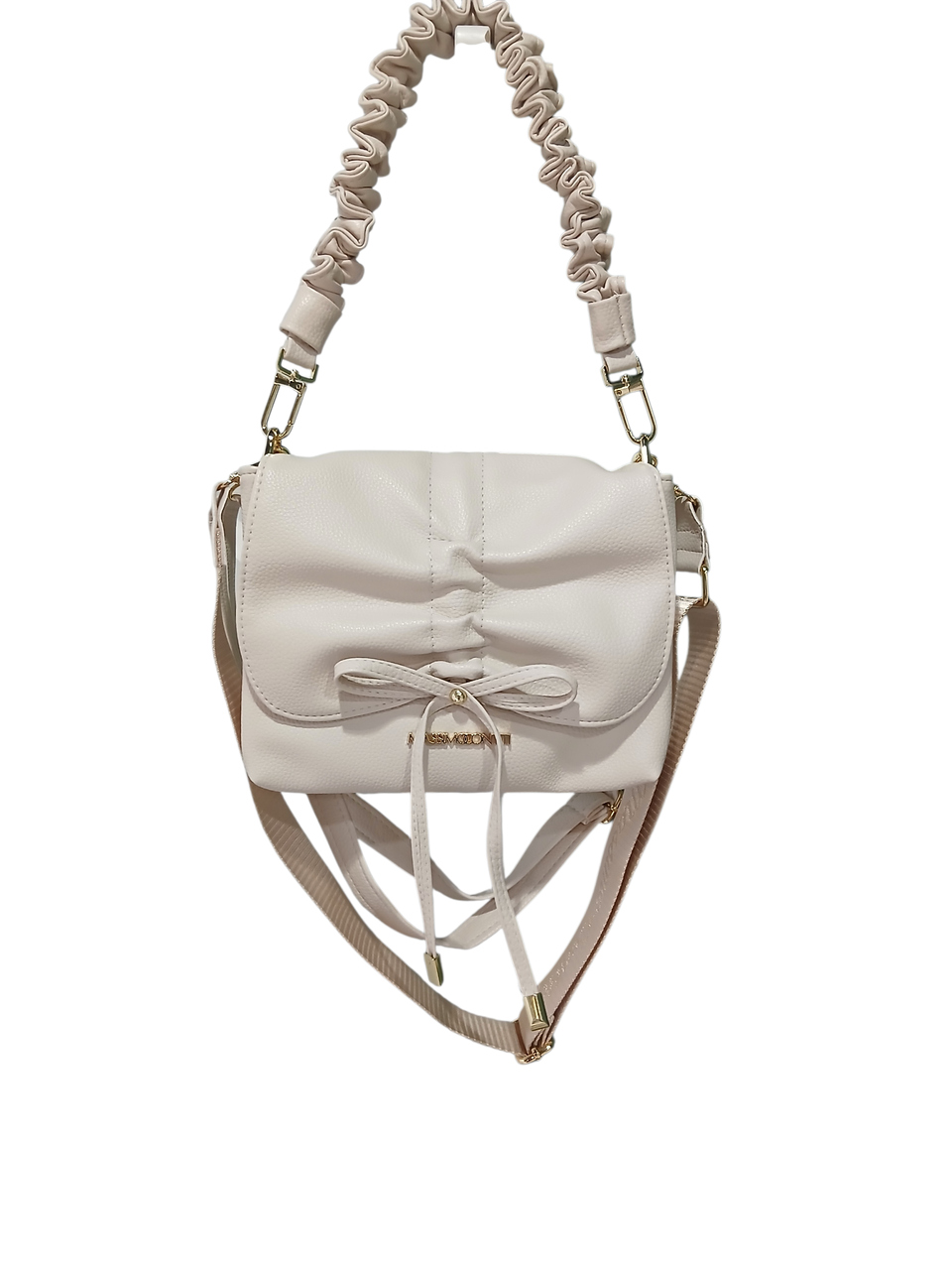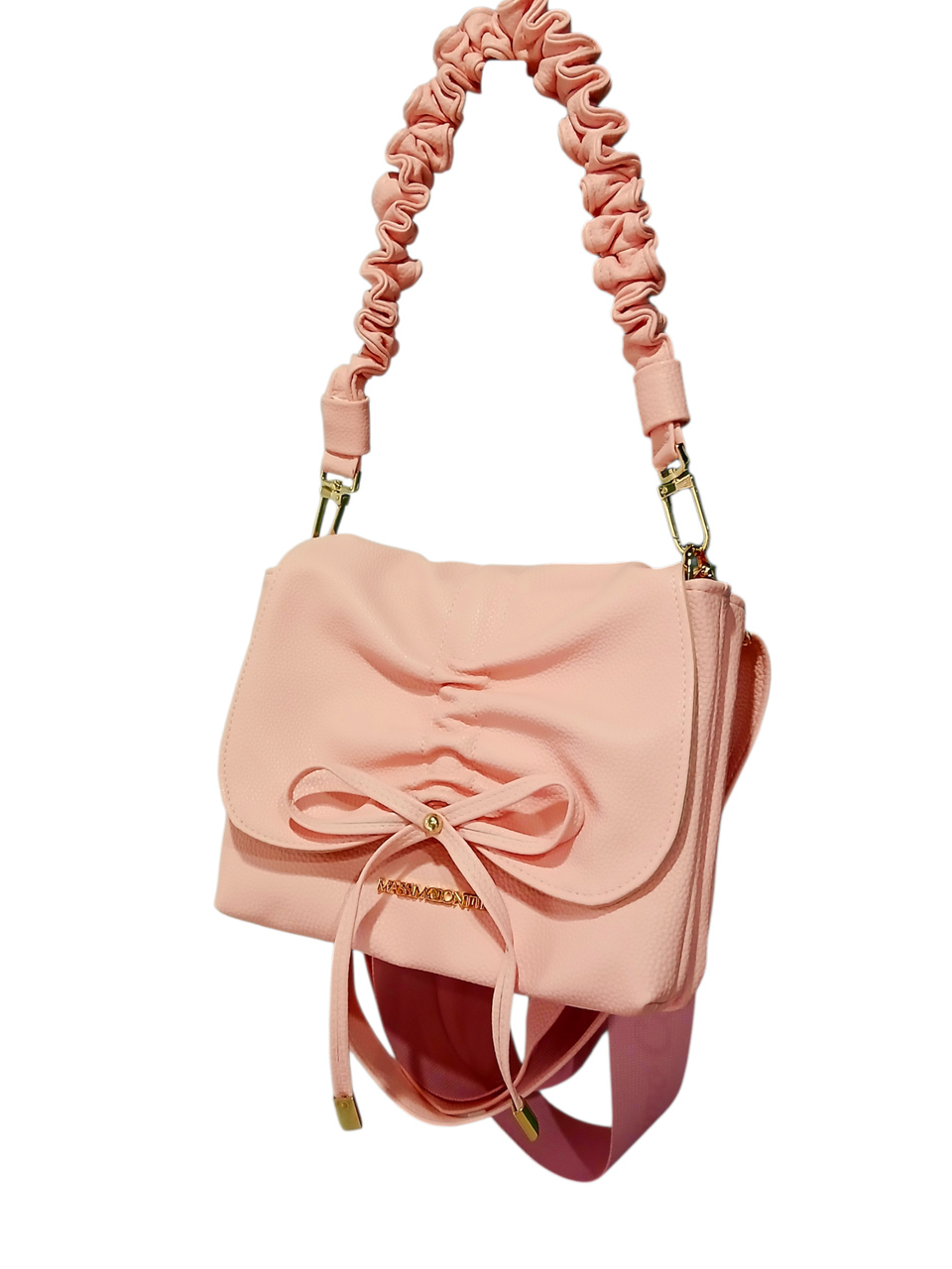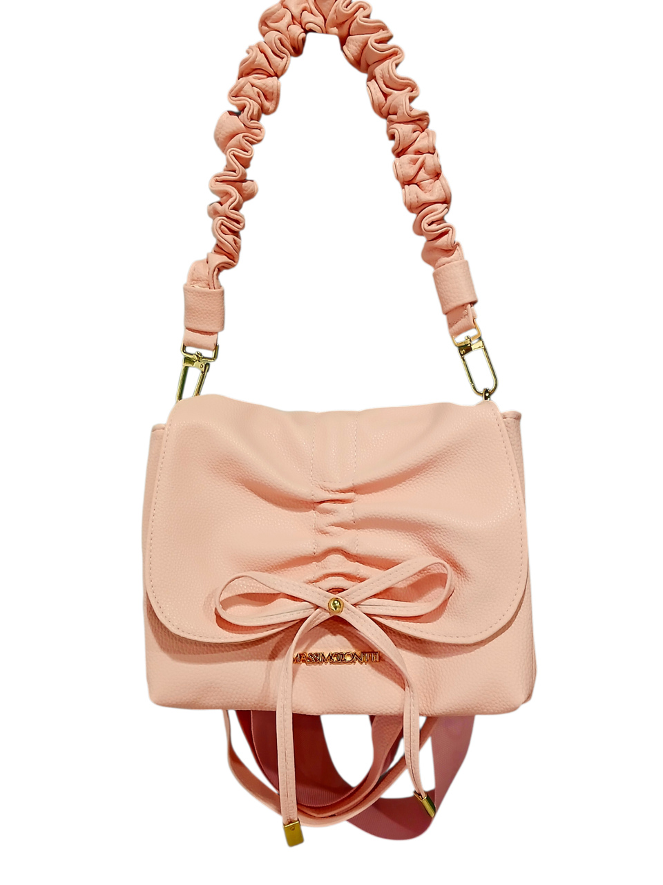 Stylowa torebka marki Massimo Contti, wykonana z miękkiej skóry ekologicznej. Model wyróżnia się marszczonym designem oraz ozdobną kokardą na froncie, które nadają całości eleganckiego, kobiecego charakteru. Uniwersalny fason sprawdzi się zarówno na co dzień, jak i przy bardziej stylowych wyjściach.