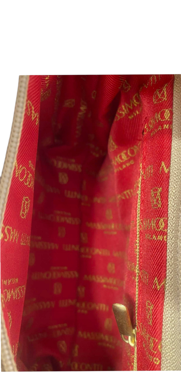 W środku znajduje się czerwona podszewka z logo Massimo Contti, która dodaje całości luksusowego wyglądu i ułatwia organizację drobiazgów.