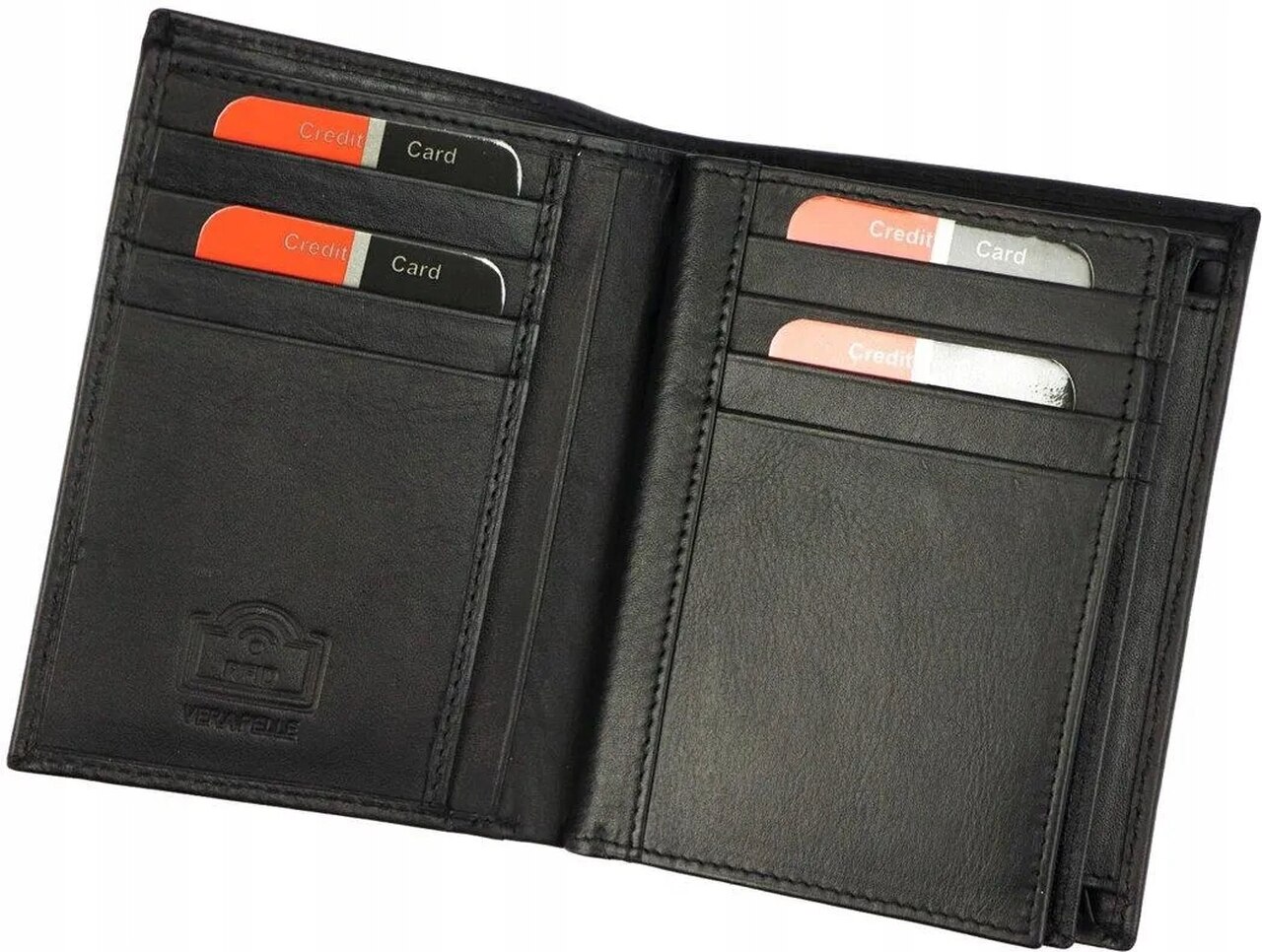 Duży, pionowy portfel został zaprojektowany z myślą o mężczyznach, którzy noszą przy sobie: